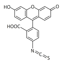 FITC مخفف Fluorescein Isothiocyanate است و یک مولکول فلورسنت سبزرنگ است که بهطور گسترده در زیستفناوری، ایمنوفلورسانس و سیتومتری جریان (Flow Cytometry) استفاده میشود. ویژگیهای اصلی FITC:دارای طول موج جذب حدود 495 نانومتر و انتشار حدود 519 نانومتر است (رنگ سبز).بهواسطهٔ گروه ایزوتیوسیانات بهراحتی به پروتئینها، آنتیبادیها و پپتیدها متصل میشود.برای برچسبگذاری آنتیبادیها در مطالعات تشخیصی و تحقیقاتی کاربرد گسترده دارد.به دلیل پایداری نوری نسبتاً خوب و شدت فلورسانس مناسب یکی از رایجترین رنگها در تصویربرداری سلولی است.در مجموع، FITC ابزار استاندارد برای ردیابی زیستی و مطالعات مولکولی محسوب میشود.